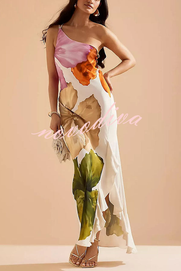 Rosavelle – One-Shoulder Floral Ruffle Maxi Dress